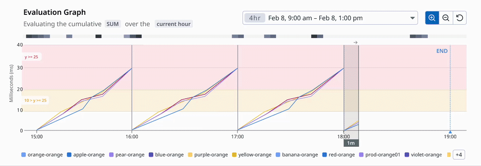 04 —> A dynamic window expands visually during the evaluation period, reflecting the current time. A new timeseries visual illustrates the SUM aggregation method by rolling up data points into a single line.
