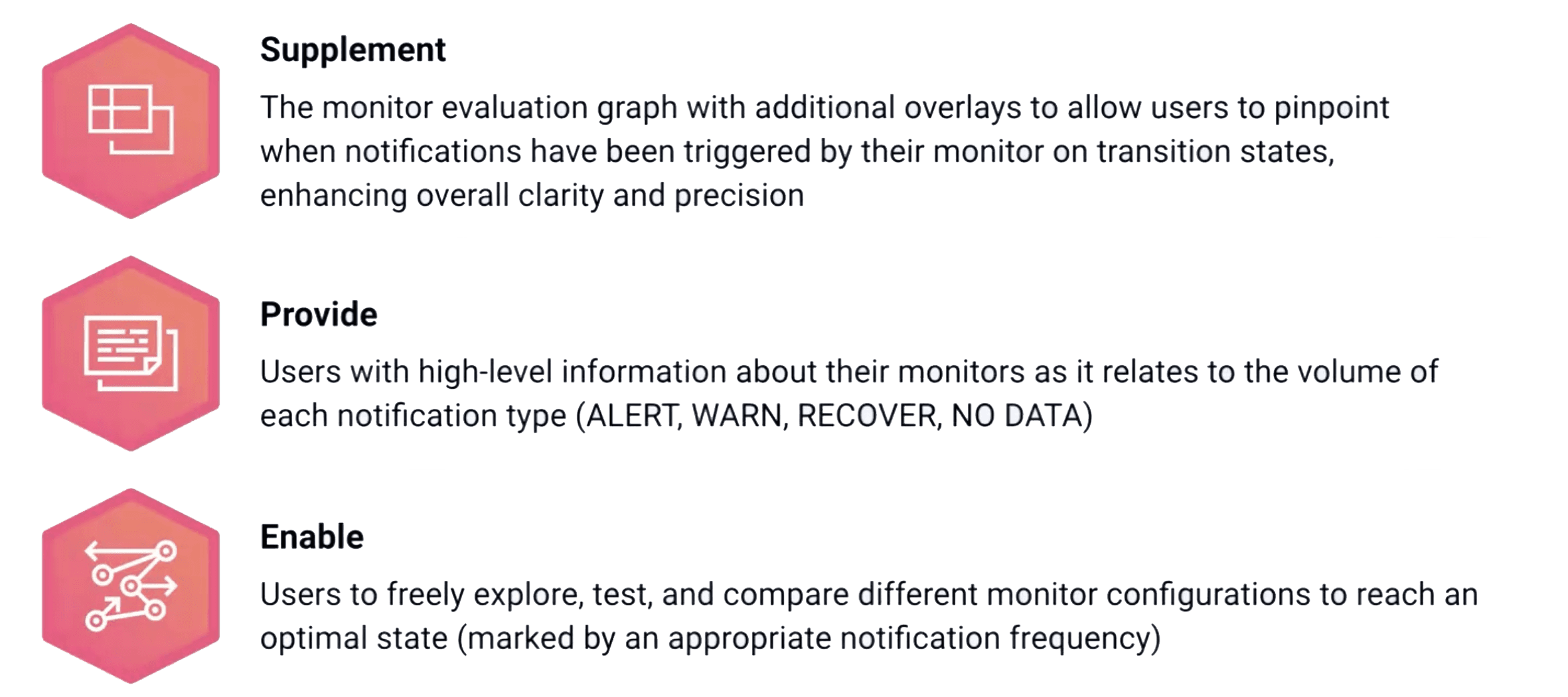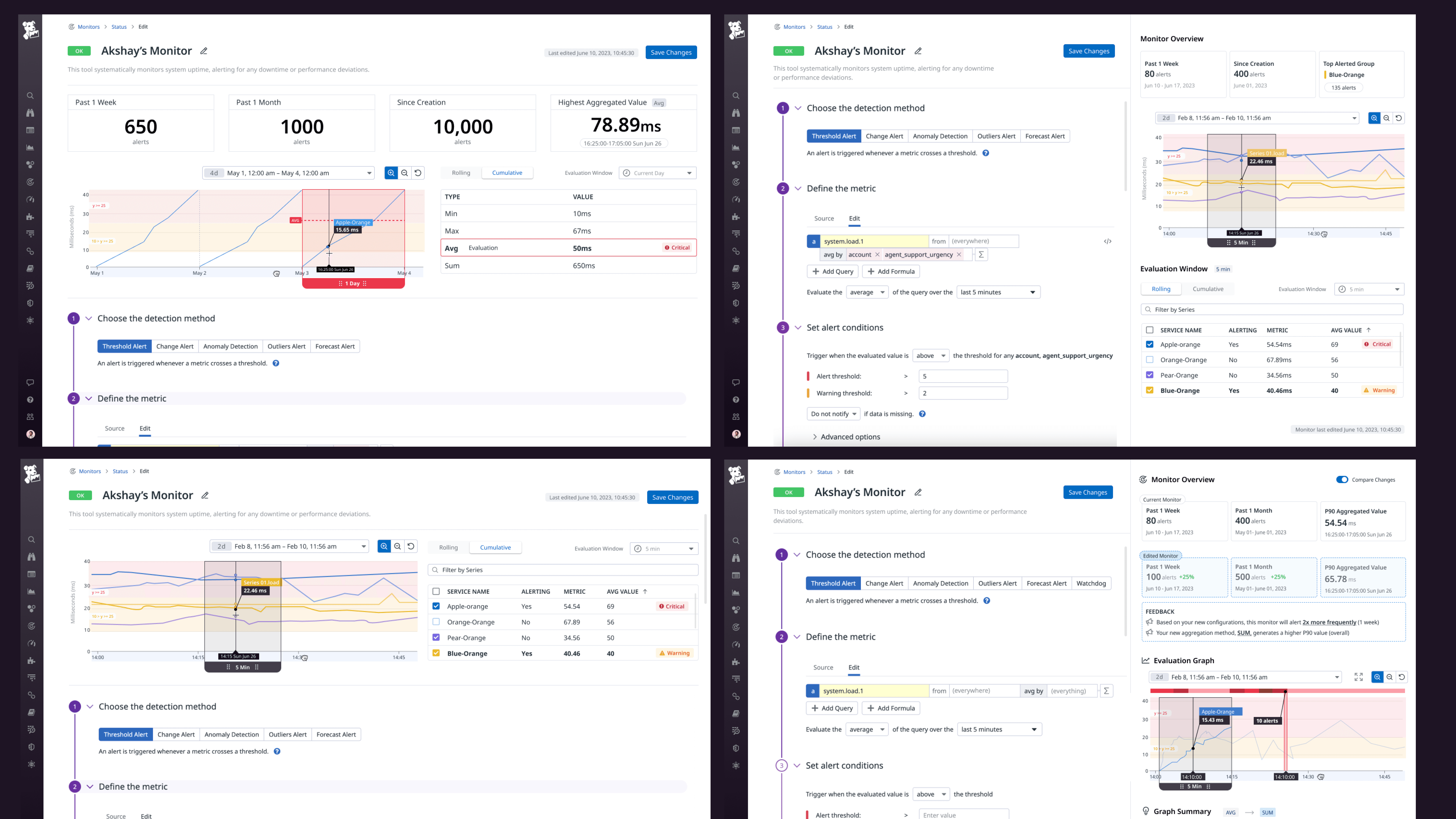 Users are unsure about how their monitors are being evaluated, how to improve their monitors for better accuracy, and select optimal threshold values. This is causing them to constantly edit their monitors after configuration, and play a guessing game to see whether their monitors will be optimal for accurate data collection and incident notification.