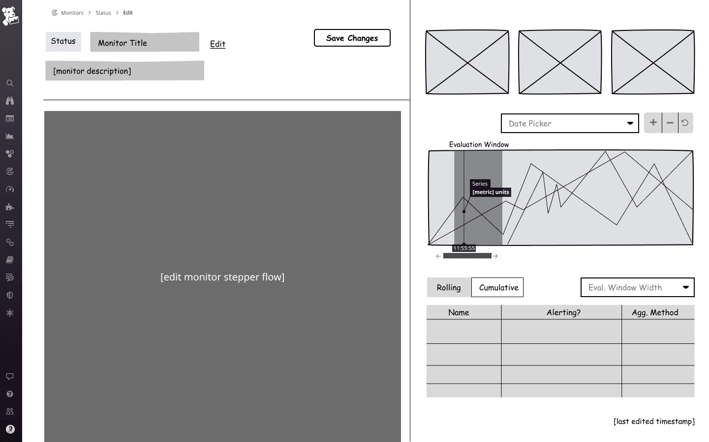 Keeping the experience simple while integrating more visual feedback and guidance. Additionally, we want to allow users to explore and test monitors freely without needing to create a new one for every edit they make.