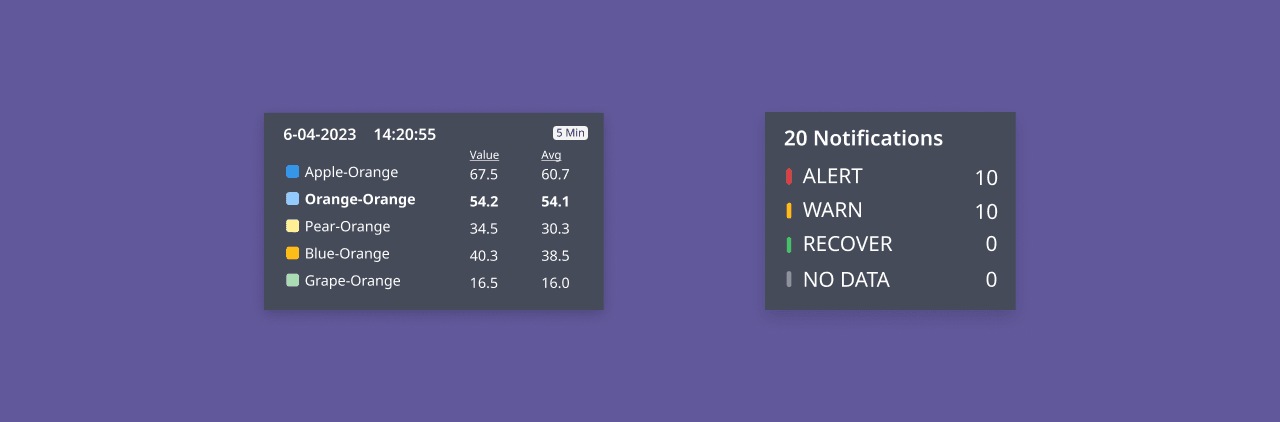 02 —> The rolling evaluation window dynamically updates based on the user-selected query period, while the event overlay bar, in greyscale or full color, shows notification volumes and transition states. Enhanced tooltips provide detailed breakdowns of each notification type when hovered over.