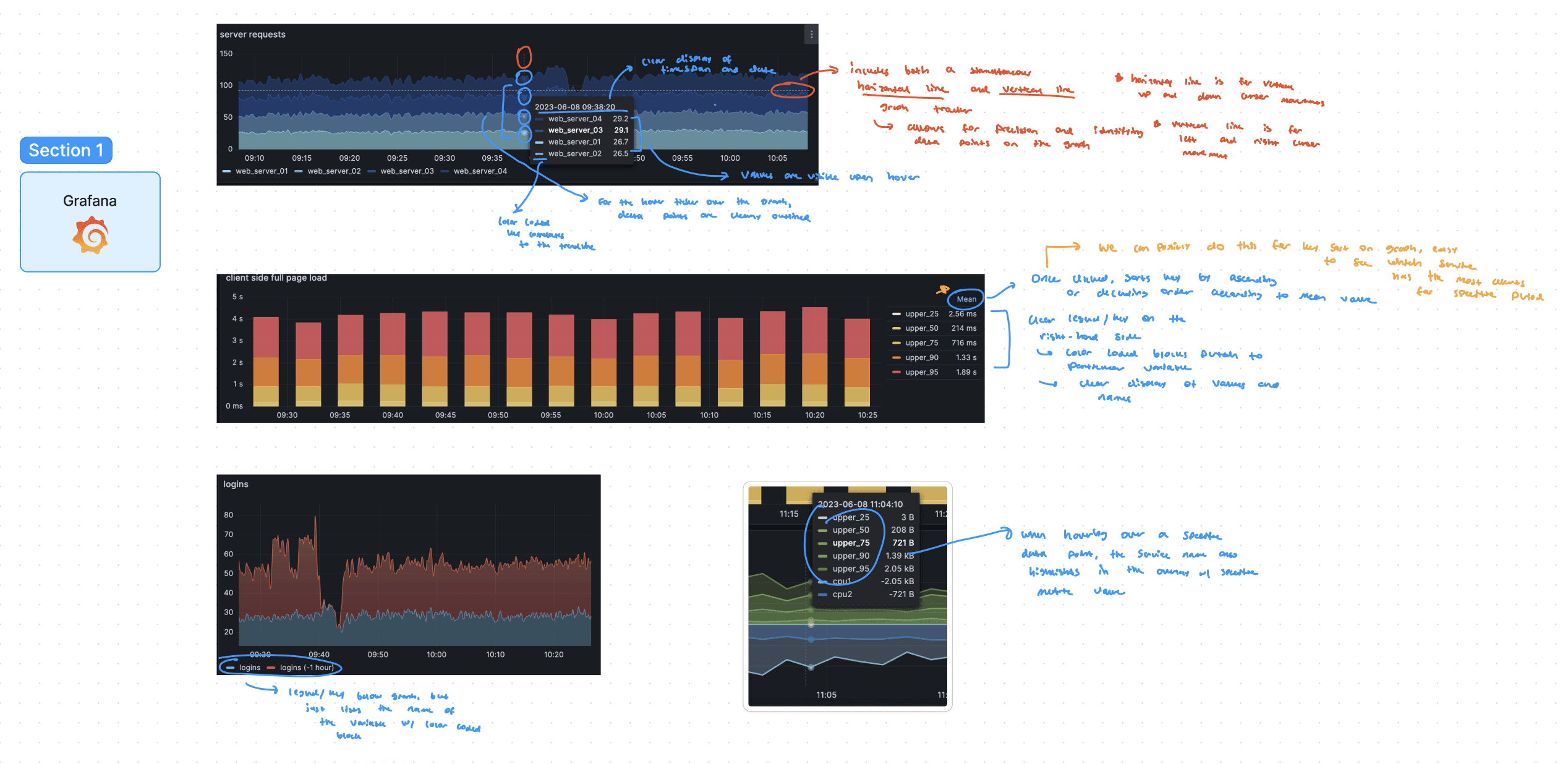 Additionally, I looked at competitor products like Grafana to identify unique layouts, interactions, and functionalities.